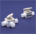 系超小型、氟化树脂製之切换阀。 |